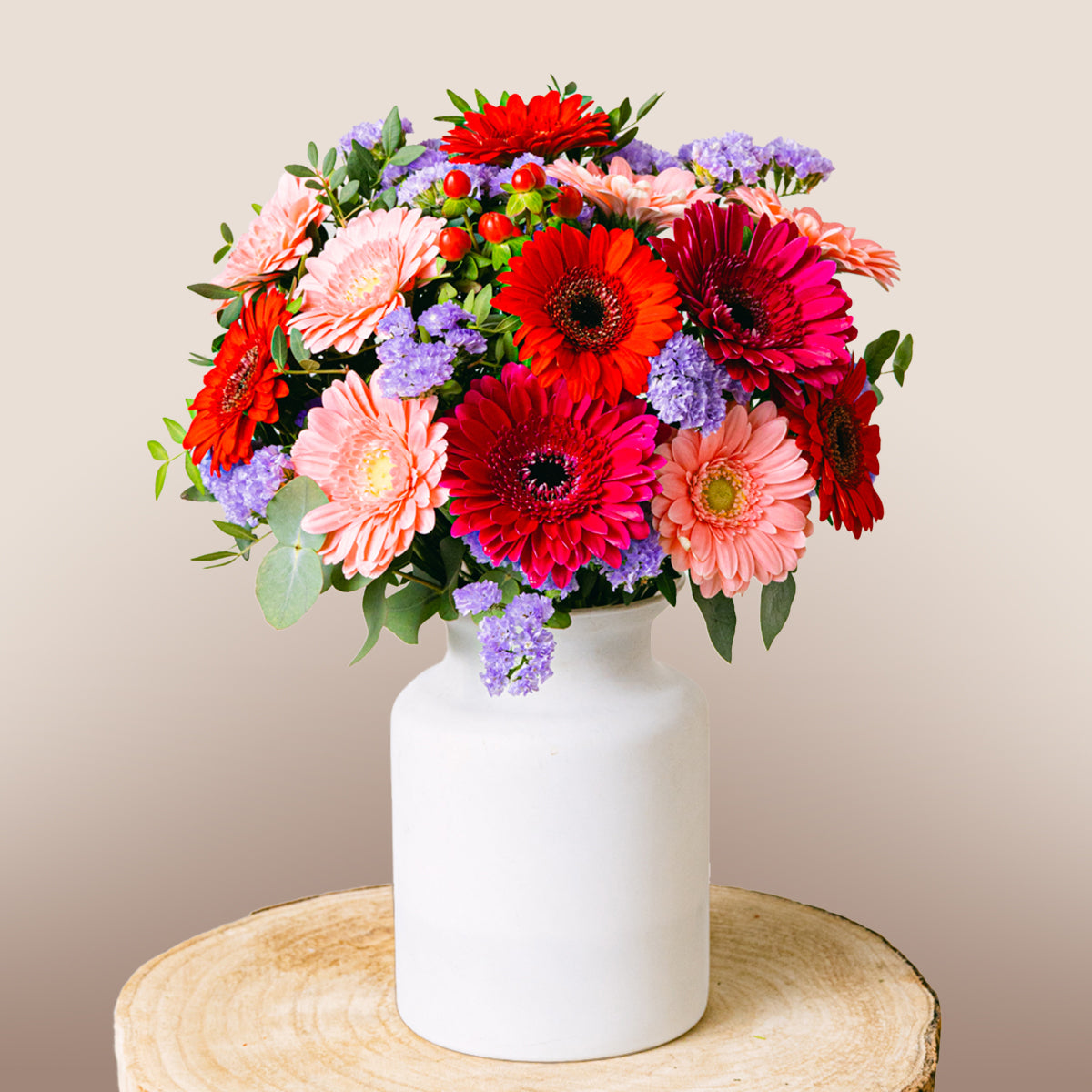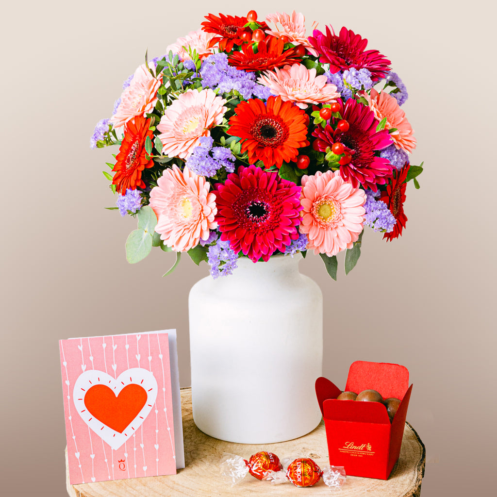 Yoğun tonlar tutkuyu yansıtırken, gerberalar neşe ve mutluluğu temsil eder. Bu düzenleme, samimi duyguları ifade etmenin en renkli yoludur.
