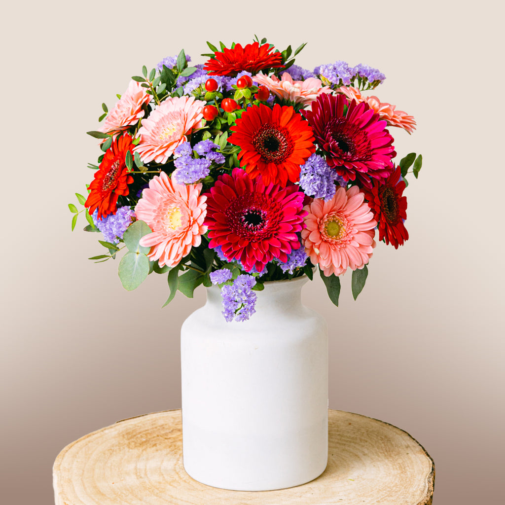 Tutku sahibi insanlar için bir seçim. Gerberaların yoğun tonları, belirgin Almodovaryen alt tonlarla mükemmel bir tasarımda birleşiyor. Bu çiçek aranjmanı kişilik dolu ve herhangi bir odaya kaygısız bir dokunuş katmak için idealdir.